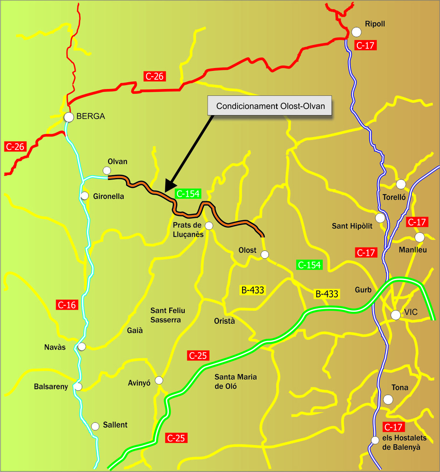 - Prats de Lluçanès – Olvan: aquest tram té una longitud total de 14,6 quilòmetres, des del final de la variant de Prats de Lluçanès fins a la variant d’Olvan, i segueix el corredor de l’actual C-154.