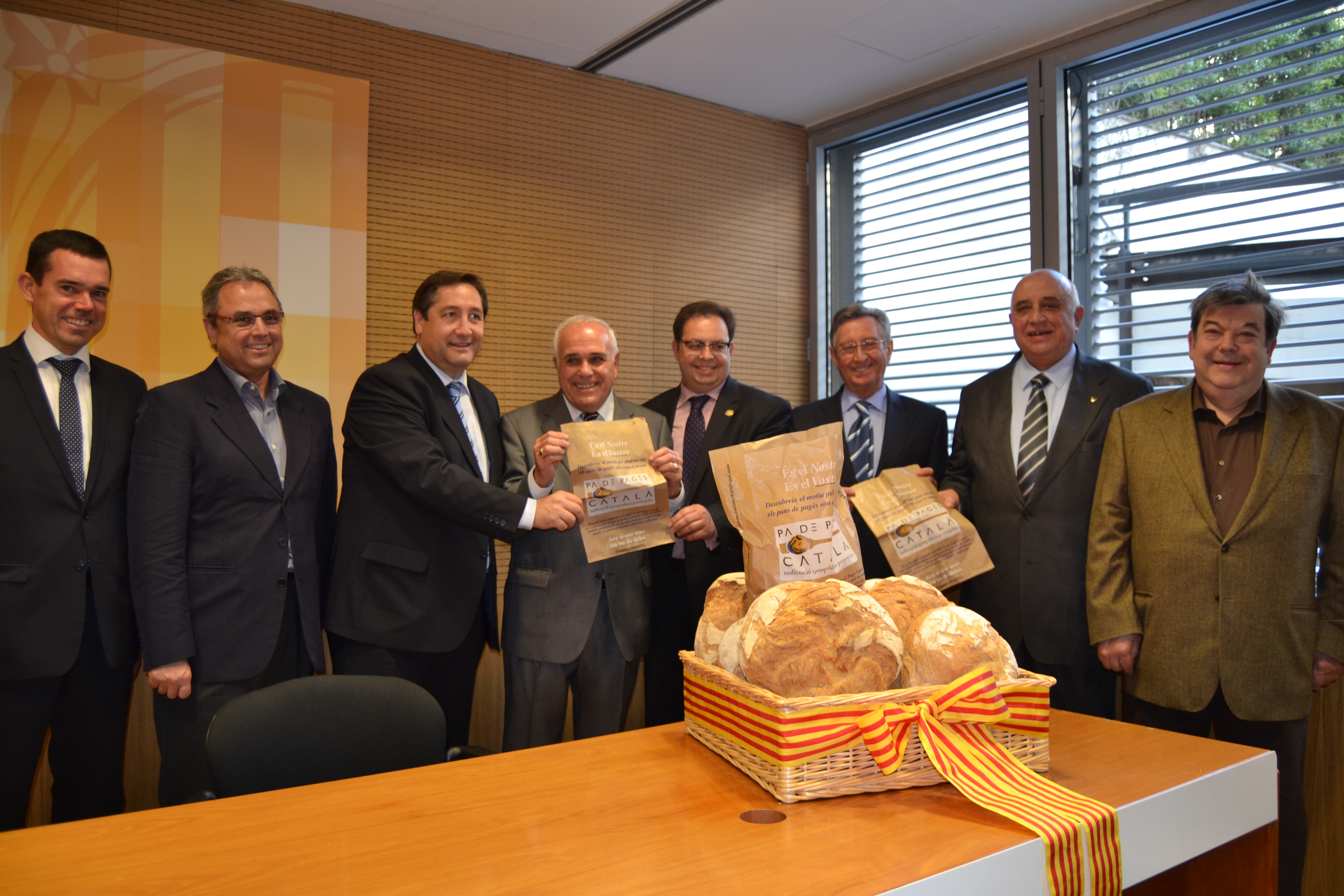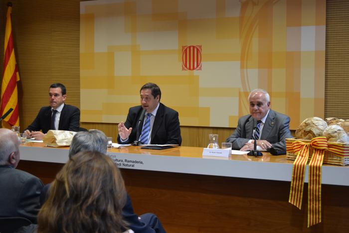 El conseller d’Agricultura, Ramaderia, Pesca, Alimentació i Medi Natural, Josep Maria Pelegrí, acompanyat del director general d’Alimentació, Qualitat i Indústries Agroalimentàries, Domènec Vila, i del president de la Indicació Geogràfica Protegida (IGP) Pa de Pagès Català, Xavier Vialamala, ha presidit, a Barcelona, la presentació oficial de la IGP Pa de Pagès Català.