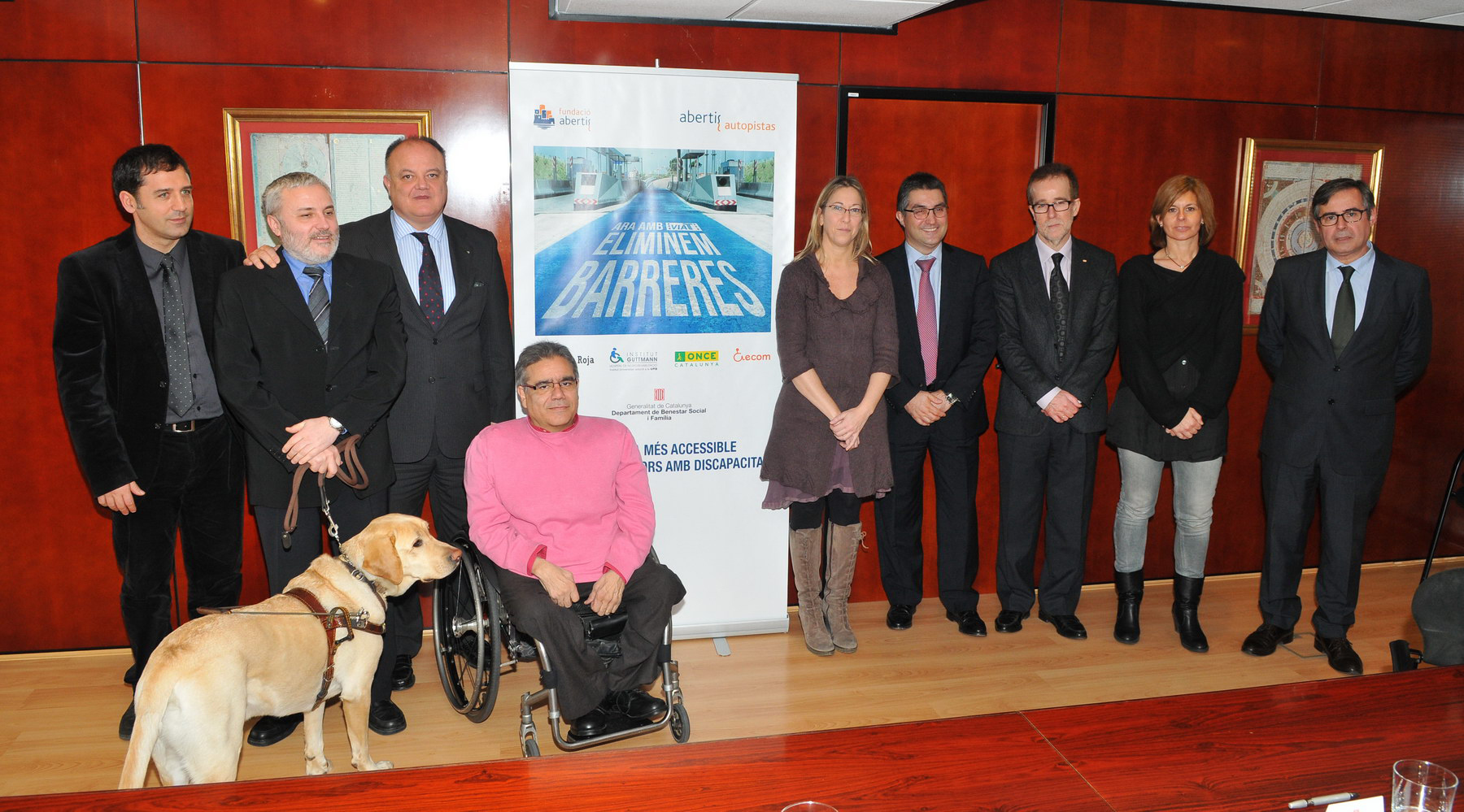 El Departament de Benestar Social i Família, la Fundació Abertis i Abertis Autopistas han presentat avui la iniciativa “Eliminem barreres”, que facilita gratuïtament dispositius VIA-T als conductors i conductores amb discapacitat i mobilitat reduïda per tal de facilitar i agilitzar el seu trànsit per la xarxa de carreteres de la concessionària. A l’acte hi ha assistit la consellera de Benestar Social i Família, Neus Munté, acompanyada pel director general d’Abertis Autopistas, Josep Lluís Giménez, i el director de la Fundació Abertis, Sergi Loughney.