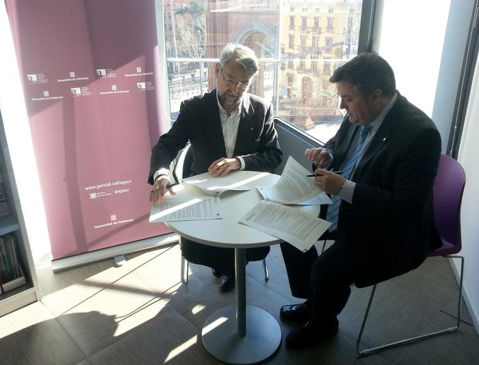 La Direcció General d’Afers Religiosos (DGAR) i l’Agència de Gestió d’Ajuts Universitaris i de Recerca (AGAUR) han signat aquest matí un conveni de col·laboració que té per objecte la gestió de la convocatòria d’ajuts a projectes de recerca en l’àmbit de la diversitat religiosa per a l’any 2014. El document l’han signat el director general d’Afers Religiosos, Enric Vendrell, i el director de l’Agència de Gestió d’Ajuts Universitaris i de Recerca, Pere Pardo.