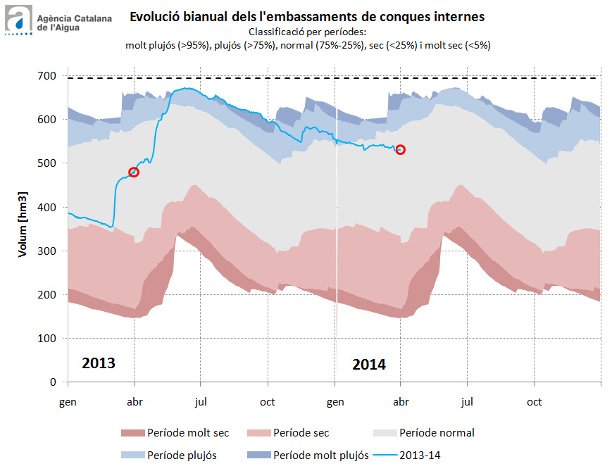 - Les reserves embassades, no obstant, es redueixen lleugerament durant el darrer mes (1 punt i 8 hm3)
