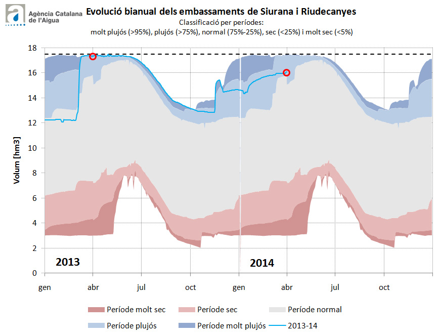 - Foix (100% i 3,7 hm3), Siurana (98% i 12 hm3), Sant Ponç (96% i 23 hm3) i Susqueda (80% i 187 hm3) són els embassaments més plens