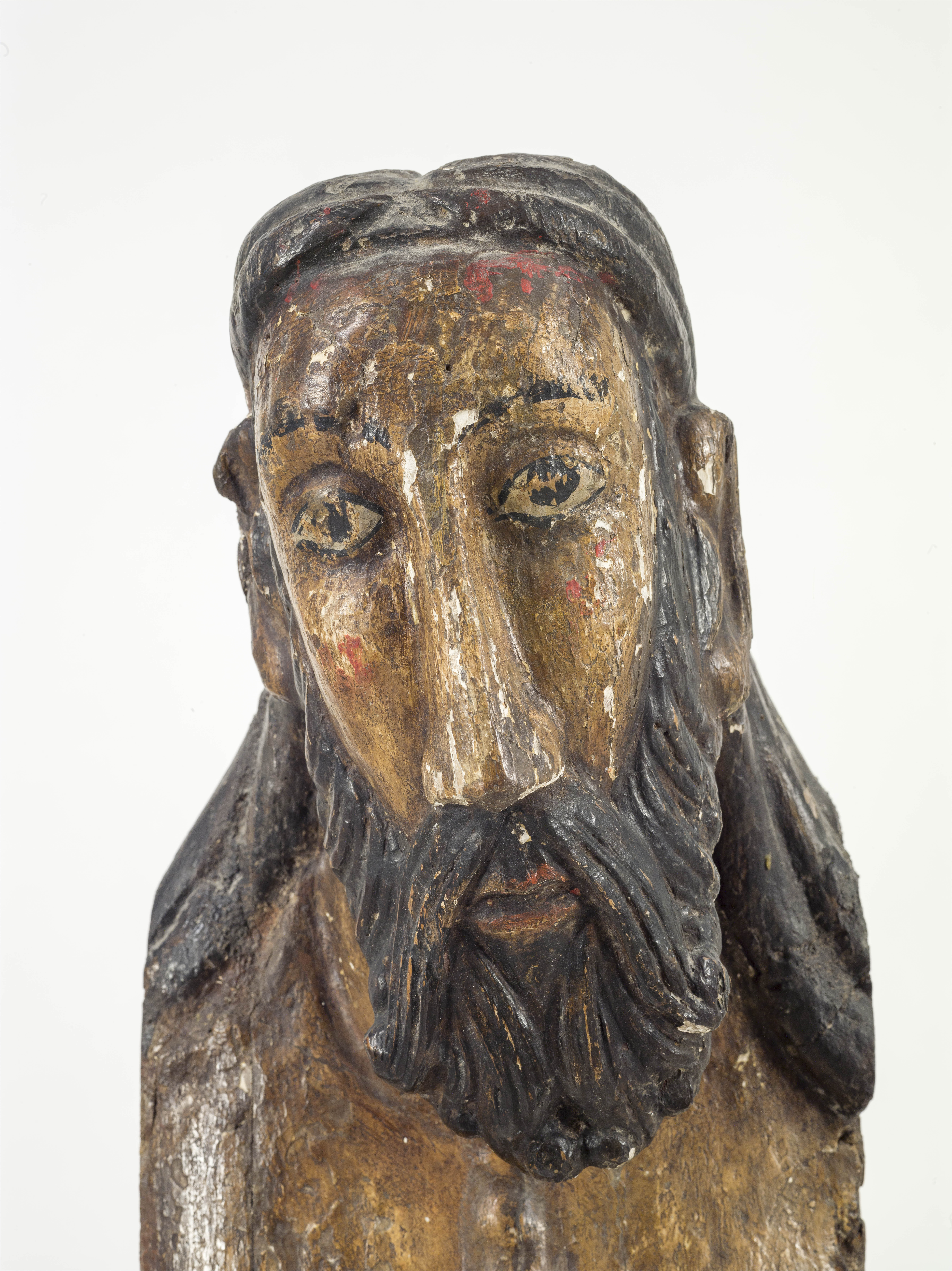 L’aspecte general del Crist era molt irregular, a causa, principalment, de la discontinuïtat dels estrats, i l’agreujaven les nombroses pèrdues, aixecaments i desgast que patia l’escultura al llarg de tota la superfície.