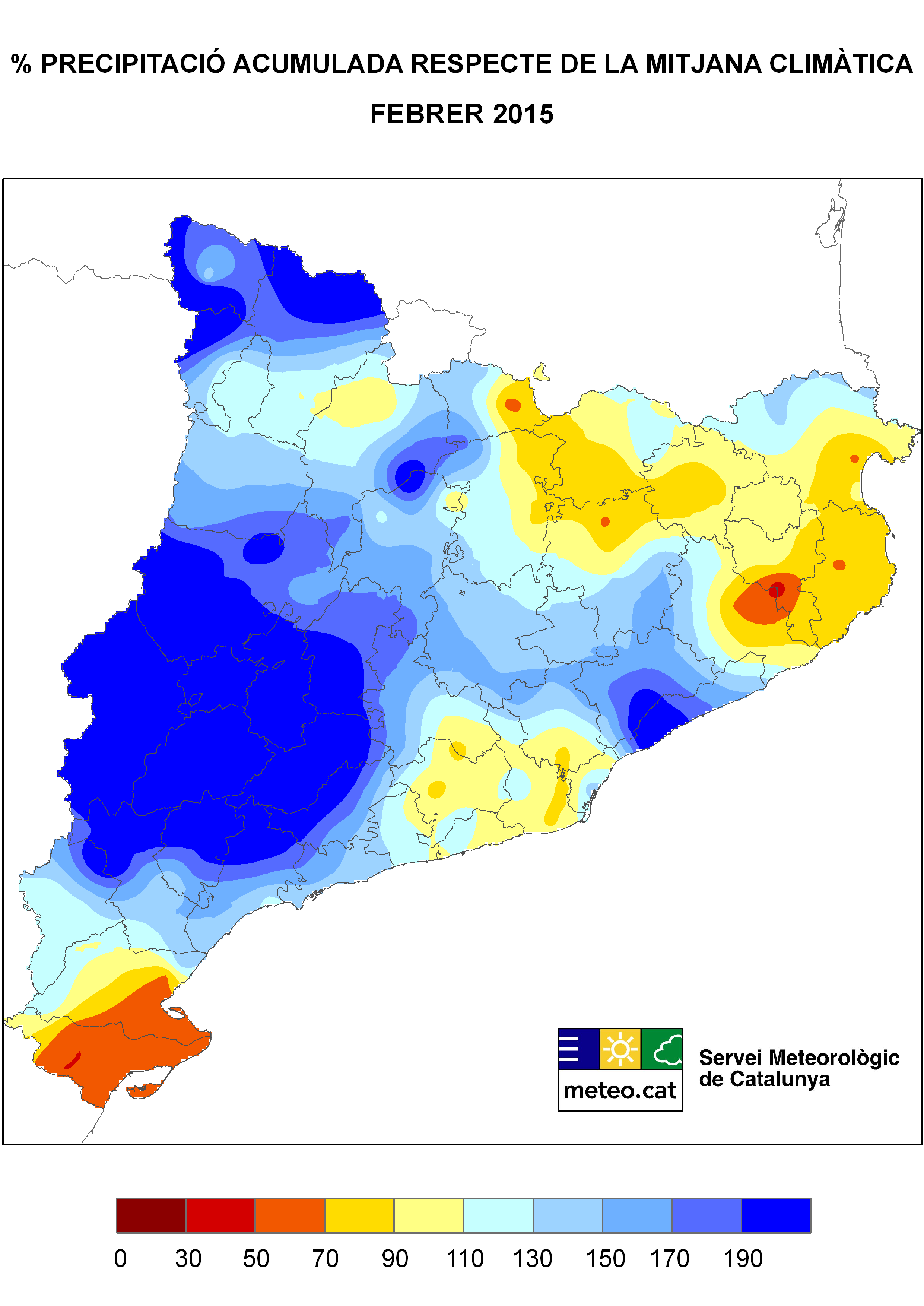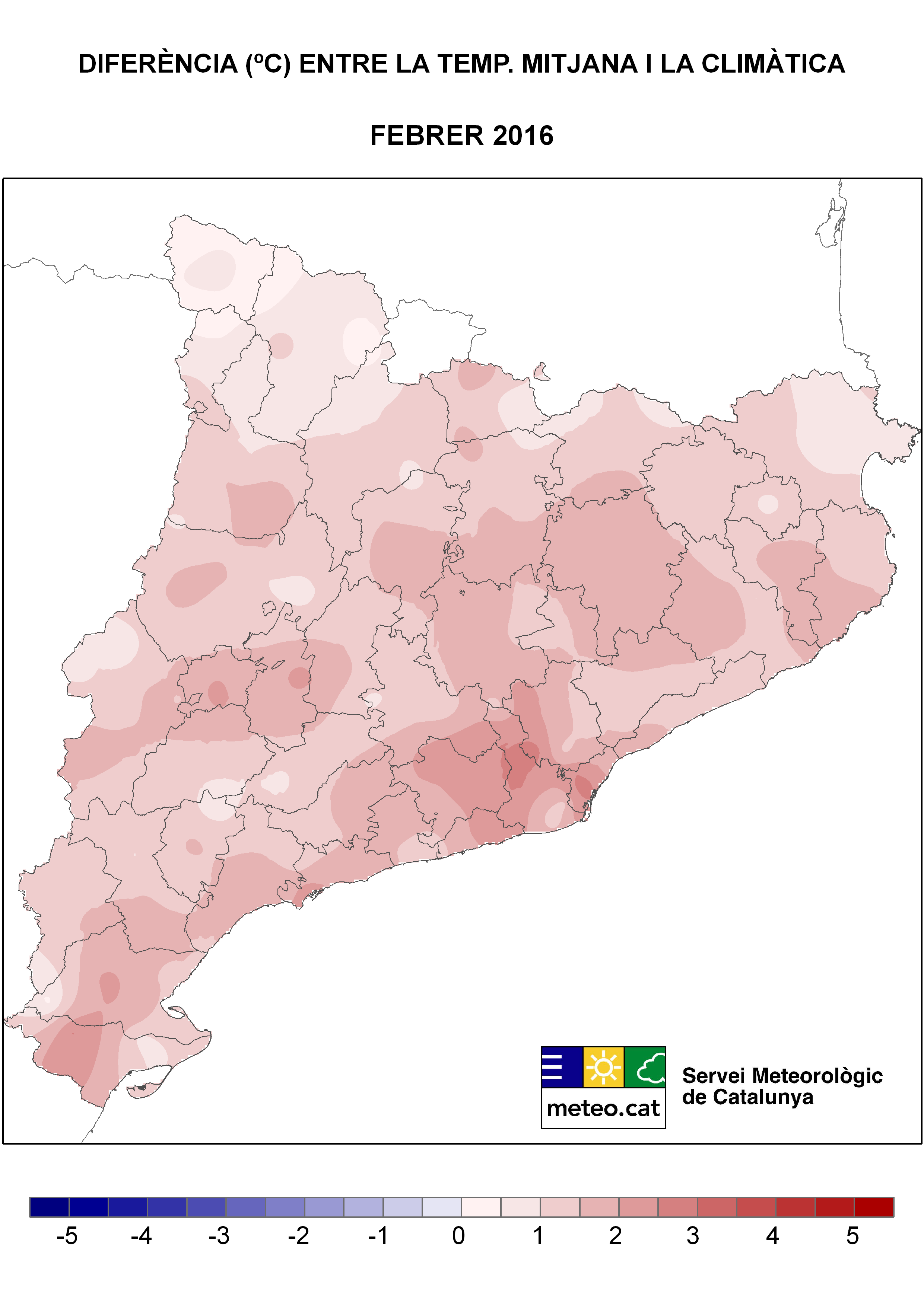 - El febrer s’ha de qualificar de càlid a Catalunya, especialment a la conurbació de Barcelona, i a àmplies zones del Prelitoral, de la depressió Central i del Prepirineu