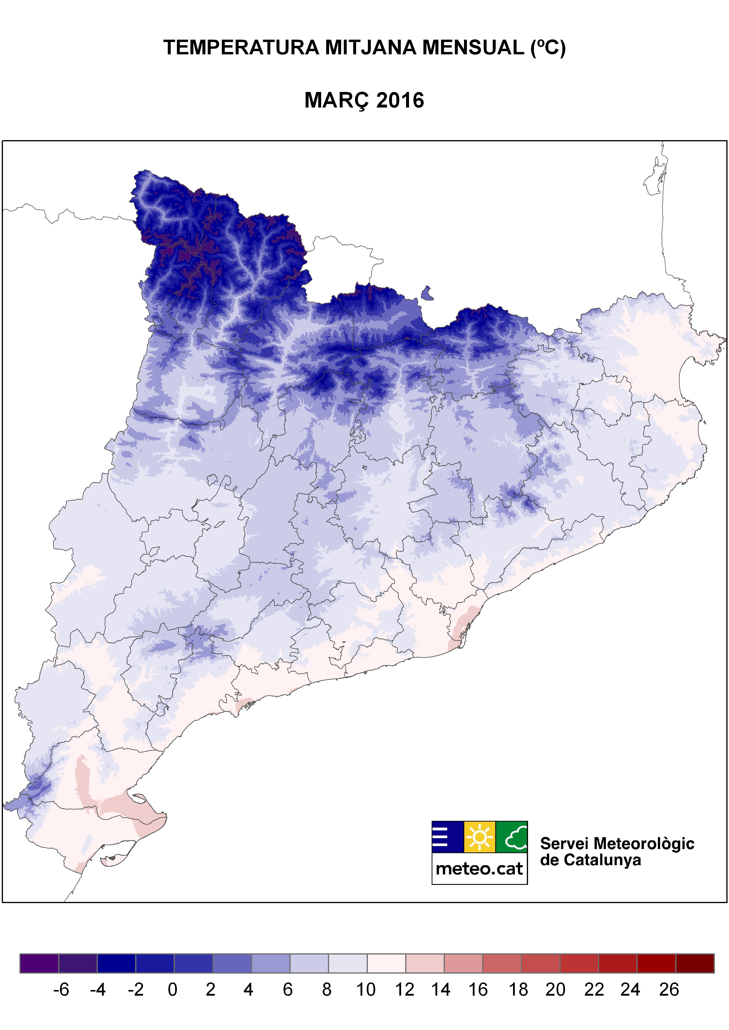 Aquests valors d’anomalia tèrmica trenquen amb una tendència de quatre mesos amb valors per damunt de la mitjana climàtica a gran part del territori. Aquest fet ha estat conseqüència d’un canvi en la configuració general dels centres acció. Al llarg de l’hivern s’havia caracteritzat per un flux molt zonal (vent de l’oest), mentre que durant el mes de març s’ha produït un desplaçament d’aquest flux cap al sud, fet que ha afavorit intrusions fredes procedents d’altes latituds que s’han combinat amb els fluxos més atlàntics procedents de ponent (més càlids a l’arribar a les nostres contrades).
