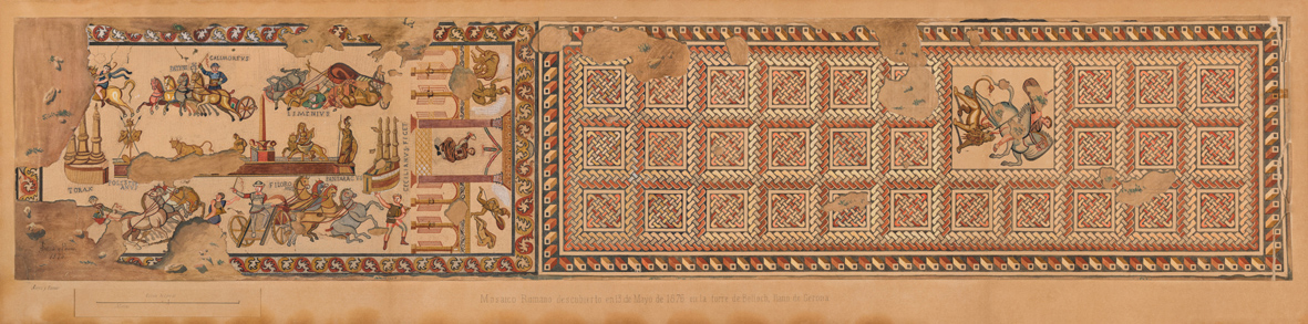El conjunt de 3 mosaics a la masia de can Pau Birol (avui col·legi de Bell-lloc del Pla), és el descobriment arqueològic més important que fins ara s’ha fet a la ciutat de Girona. La troballa va tenir lloc el 1846, ara fa 140 anys. Els mosaics són d’una gran qualitat i una riquesa enorme, i es coneixen com el mosaic de Bel·lerofontes, el mosaic de Teseu i Ariadna i el mosaic del Circ.