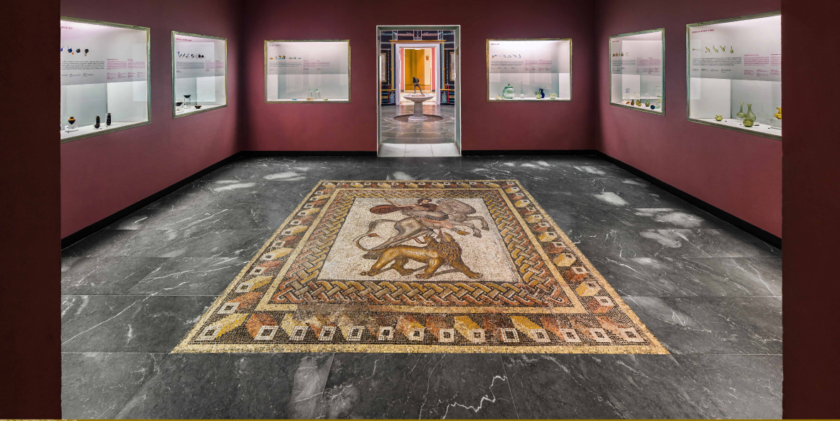 - Els mosaics, que es conserven actualment en tres museus diferents, es poden veure junts per primera vegada, gràcies a una recreació a escala real