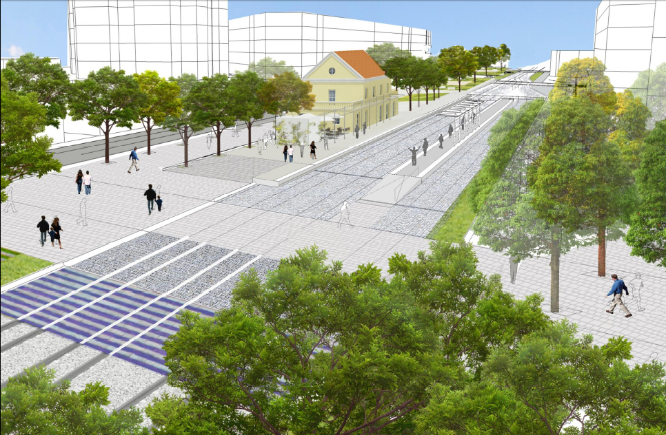 - L’actuació inclou el condicionament de la plataforma de via, la pavimentació i semaforització dels encreuaments amb la xarxa viària i el condicionament i urbanització de l’entorn de l’estació