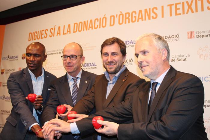 El conseller de Salut, Antoni Comín, i el vicepresident del FC Barcelona, Jordi Cardoner, han apadrinat avui el primer ambaixador de l’Organització Catalana de Trasplantaments (OCATT), l’exfutbolista blaugrana Éric Abidal, en un acte celebrat al Camp Nou i que arriba dies després que la Fundació Éric Abidal i la Fundació FC Barcelona firmessin un acord de col·laboració.