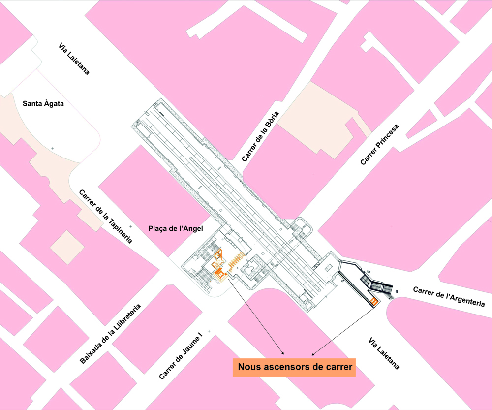 L’actuació inclou també la remodelació dels dos vestíbuls. Al vestíbul de la plaça de l’Àngel es crearà una nova sala de cap d’estació i, al del carrer de l’Argenteria, s’executarà un nou tram d’escales fixes per a connectar el carrer i el vestíbul, que substituirà el tram d’escales actual. A tots dos vestíbuls, es renovaran les màquines validadores. Finalment, es recreixeran les andanes per eliminar el desnivell existent amb els trens.
