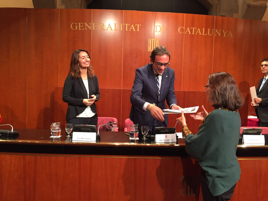 El conseller de Territori i Sostenibilitat, Josep Rull, la secretària de Medi Ambient i Sostenibilitat, Marta Subirà, i la directora general de Qualitat Ambiental i Canvi Climàtic, Mercè Rius, han lliurat aquesta tarda, en un acte al Palau de la Generalitat, els certificats d’Acords Voluntaris a les últimes 39 organitzacions que s’han adherit a aquest programa de reducció d’emissions de gasos amb efecte d’hivernacle (GEH) que promou la Generalitat.