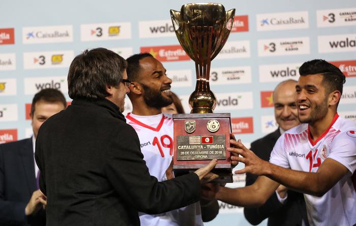 El president de la Generalitat, Carles Puigdemont, ha assegurat aquest vespre, durant el partit que han disputat la Selecció Catalana de Futbol i la de Tunísia, que “Catalunya s’ha guanyat a pols poder competir oficialment a nivell internacional”, i ha subratllat que, “des del Govern, treballem per aconseguir-ho”.