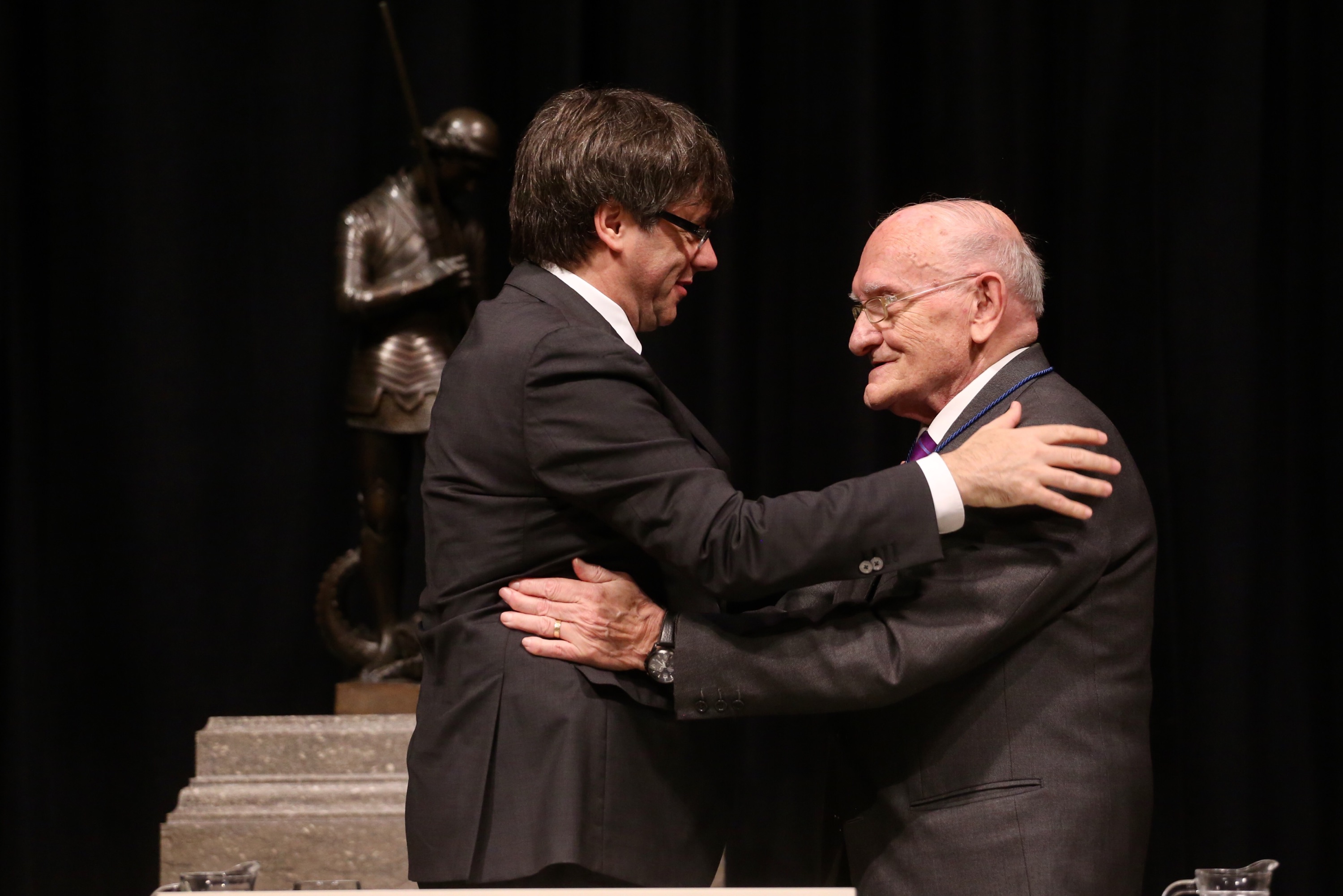 En el decurs de l’acte, que ha tingut lloc al Saló de Sant Jordi del Palau de la Generalitat, Gabriel Ferraté ha rebut de mans del president Puigdemont la Medalla d’Honor de la UOC, la més alta distinció d’aquesta universitat, que s’ha lliurat avui per primera vegada. A més de l’homenatjat, també han pres part en l’acte el secretari d’Universitats i Recerca, Arcadi Navarro, qui ha glossat la figura de Ferraté, i del rector de la UOC, Josep A. Planell.