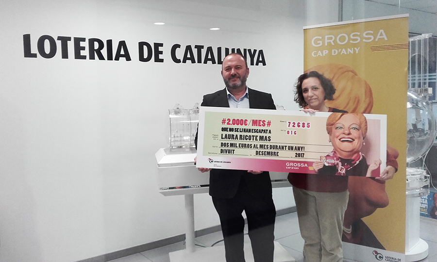 La Grossa de Cap d’Any d’aquest 2017 ja ha començat a repartir sort. El director de Loteria de Catalunya, Jaume Torrabadella, ha estat l’encarregat de lliurar el premi de 2.000 euros al mes durant 12 mesos a Laura Ricote Mas, guanyadora del concurs.