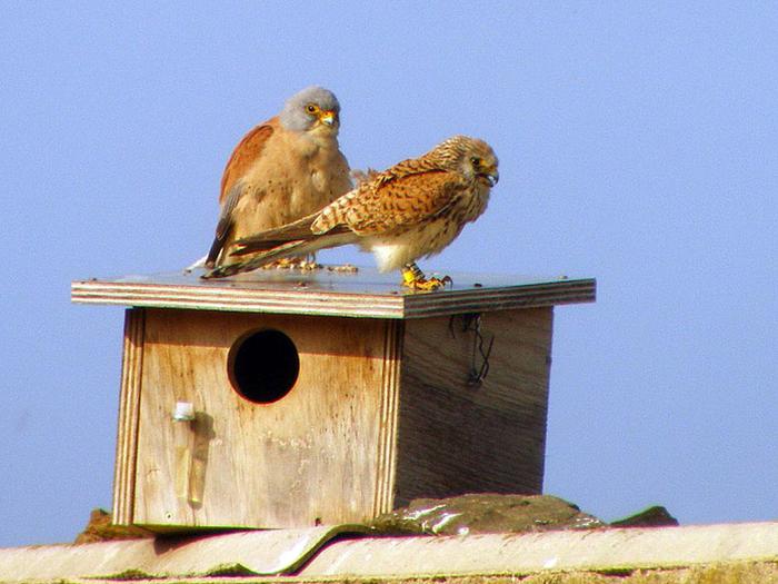 - Tècnics del Centre de Recuperació de Fauna de Torreferrussa han col·locat 10 noves caixes-niu al campanar de la Basílica de Santa Maria de Castelló d’Empúries, dins del programa de reintroducció d’aquesta espècie en perill d’extinció