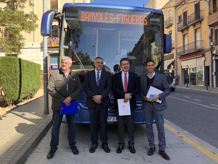 El Departament de Territori i Sostenibilitat posa en marxa un seguit de millores al servei de transport públic per carretera entre Banyoles i Figueres. A partir de dilluns vinent, 7 de maig, hi haurà 28 noves expedicions setmanals entre aquetes dues poblacions. La millora també beneficiarà els municipis de Fontcoberta, Esponellà, Crespià, Navata, Avinyonet de Puigventós i Vilafant, que formen part del recorregut d’aquesta línia. El director general de Transports i Mobilitat, Pere Padrosa, l’alcalde de Banyoles, Miquel Noguer, i l’alcalde de Crespià, Xavier Quer, han presentat avui aquesta millora.