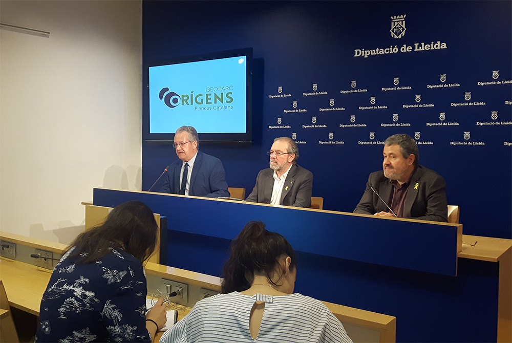 Geoparc Orígens-Pirineus Catalans és el nom escollit com a marca de posicionament del territori Conca de Tremp-Montsec, reconegut el passat mes d’abril per la UNESCO. El nom comercial ha estat anunciat avui a Lleida pel president del Geoparc, Joan Ubach; el director general de Polítiques Ambientals i Medi Natural del Departament de Territori i Sostenibilitat, Ferran Miralles, i el president de la Diputació de Lleida, Joan Reñé.