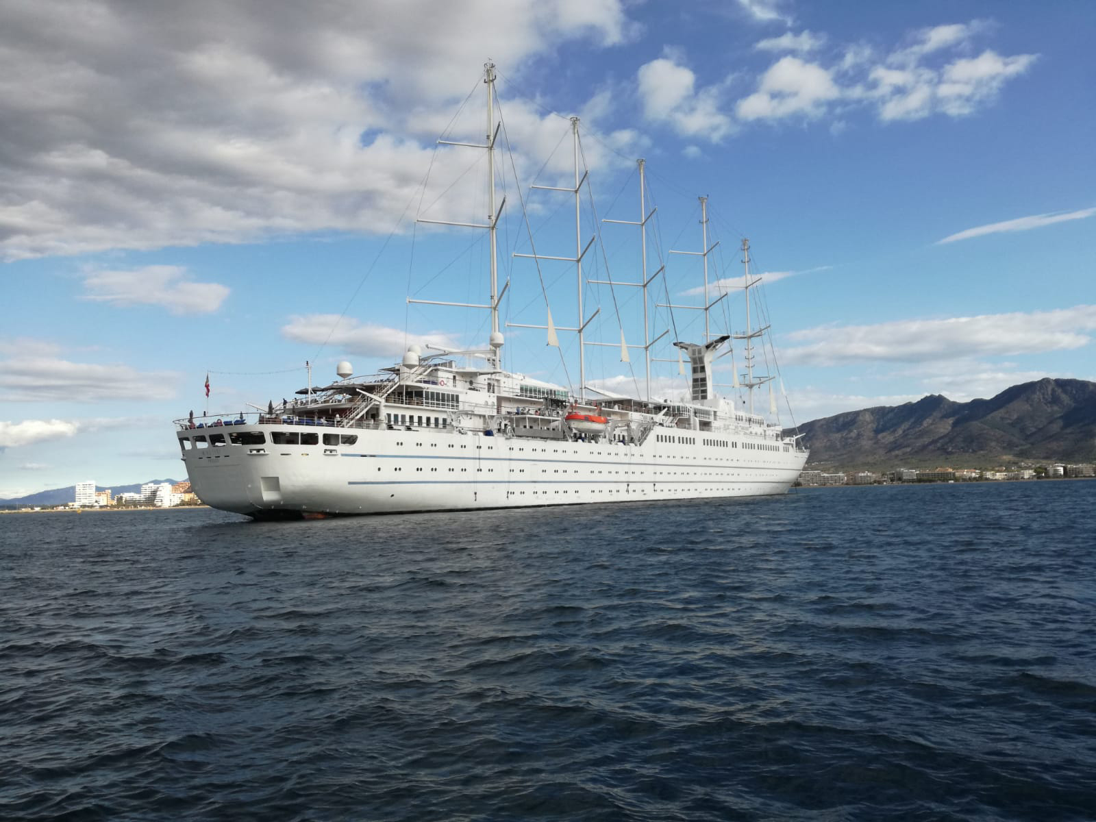 A Roses, el Wind Surf ha arribat a les 8.00 h del port francès de Sanary sur Mer i preveu salpar a les 20.00 hores cap a Barcelona. El creuer porta 302 passatgers, la major part dels quals són nord-americans.