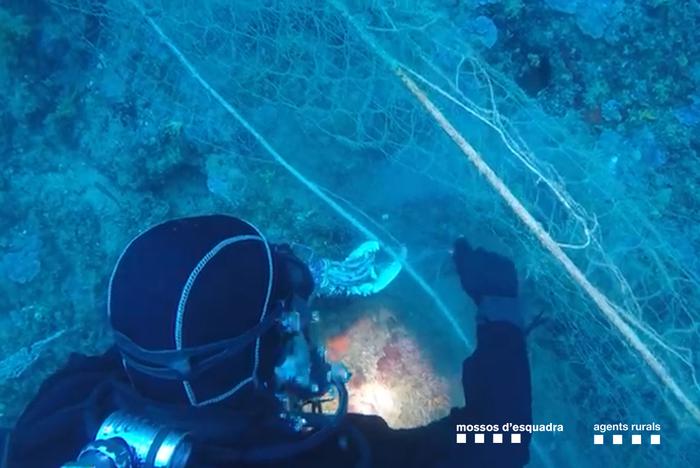 . La xarxa retirada feia uns 150 metres lineals i era del tipus solta, posava en perill l’activitat dels submarinistes i suposava un fort impacte sobre el medi natural al fons marí