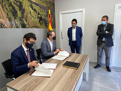 - El conseller Damià Calvet i l’alcalde Manel Solé signen un conveni per a la cessió a l’Ajuntament de la travessera de l’LP-7041 i del traspàs a la Generalitat del camí de Mequinensa