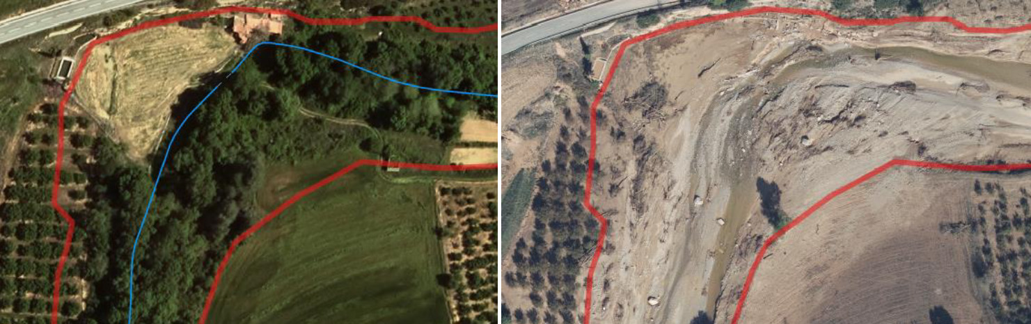 Les zones ocupades per l’aigua durant l’episodi han coincidit amb els mapes d’inundabilitat elaborats per l’ACA, sent l’arrossegament de vegetació, sumat als elevats cabals d’aigua, el principal factor per explicar els importants danys provocats per la força de l’aigua.