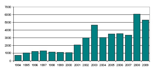 S’estima que el conjunt de Centres de Recuperació de Fauna Salvatge del Departament ha tractat més de 100.000 animals des de la seva creació. El resultat d’aquests 30 anys de funcionament demostren com el nombre d’exemplars ingressats s’han anat incrementant de manera progressiva, especialment en els darrers anys.