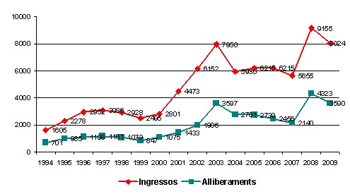 Entrades totals als centres de recuperació de fauna del Departament durant l’any 2009 (veure arxiu adjunt)