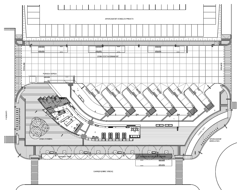 La nova instal·lació es construirà a la prolongació del carrer d’Enric Vincke i ocuparà una superfície total d’uns 4.000 m2, disposarà d’una platja de 7 andanes per als autobusos en semibateria i també constarà d’un espai de parada ràpida i una zona d’estacionament d’autobusos en fila davant de les andanes. Es preveu que absorbeixi més de 243.000 viatgers anualment.