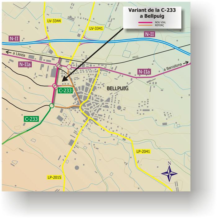 Cal destacar també que amb la construcció de la variant de Bellpuig s’evita el pas dels vehicles que circulen per la C-233 i volen accedir a la N-II, per dins del nucli d’aquesta població. La variant connecta directament la C-233 amb l’antiga N-II (N-IIa). A partir de la N-IIa, es poden fer les diferents connexions amb l’autovia de la N-II.