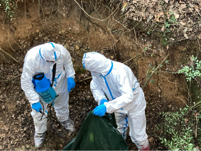 - La detecció i la localització de senglars morts en la zona de risc, i fer-ne la retirada de manera biosegura. Aquesta feina l’ha efectuat un dispositiu de 20 agents rurals. En el simulacre han emprat drons de la Unitat RPAS i gossos del Grup Especial Caní per detectar-ne els cadàvers.