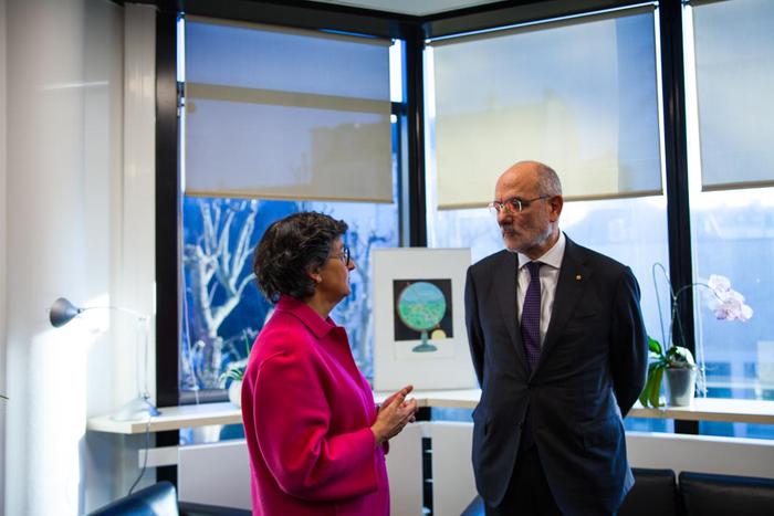 Amb el director general adjunt Ernesto Ottone i el ministre Ernest Urtasun, han compartit la satisfacció d’acollir a Barcelona la pròxima edició de Mondiacult, la conferència mundial sobre polítiques culturals i desenvolupament sostenible de la UNESCO, que tindrà lloc entre el 29 de setembre i l’1 d’octubre.