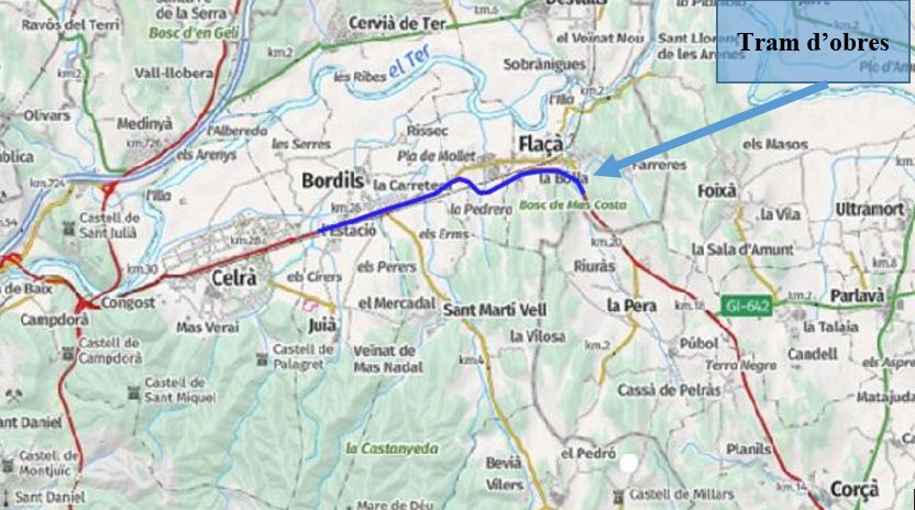 El Departament de Territori, Habitatge i Transició Ecològica ha iniciat els treballs de manteniment i reparació de la carretera C-66, als municipis de Flaçà, Sant Joan de Mollet, Sant Martí Vell i Bordils.
