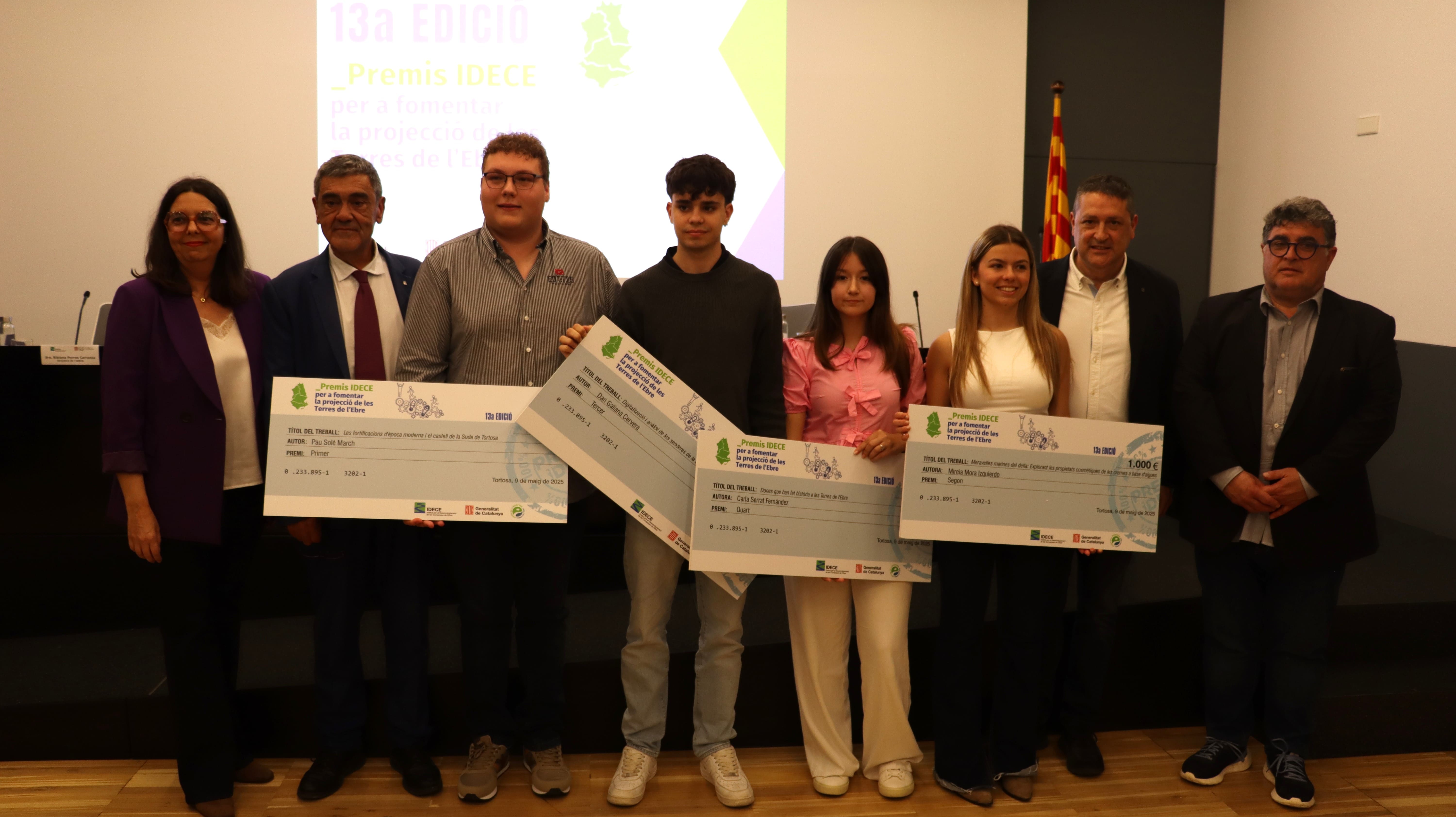 El treball ‘Les fortificacions d’època moderna i el castell de la Suda de Tortosa’, de Pau Solé March, de l’Institut de Roquetes, ha guanyat la tretzena edició dels Premis IDECE, dotat amb 1.500 euros. El segon premi, dotat amb 1.000 euros, se l’ha endut Mireia Mora Izquierdo, estudiant de l’Institut els Alfacs de la Ràpita, amb el treball‘Meravelles marines del delta: explorant les propietats cosmètiques de les cremes a base d’algues’. Dan Galiana Cervera, del Col·legi Sagrada Família de Tortosa, ha guanyat el tercer premi, dotat amb 700 euros, amb el treball ‘Digitalització i anàlisi de les senderes de la Serra de Cardó-Boix a Tortosa’; i el quart premi, dotat amb 500 euros, se l’ha endut Carla Serrat Fernàndez, també de l’Institut els Alfacs de la Ràpita, amb ‘Dones que han fet història a les Terres de l’Ebre’.
