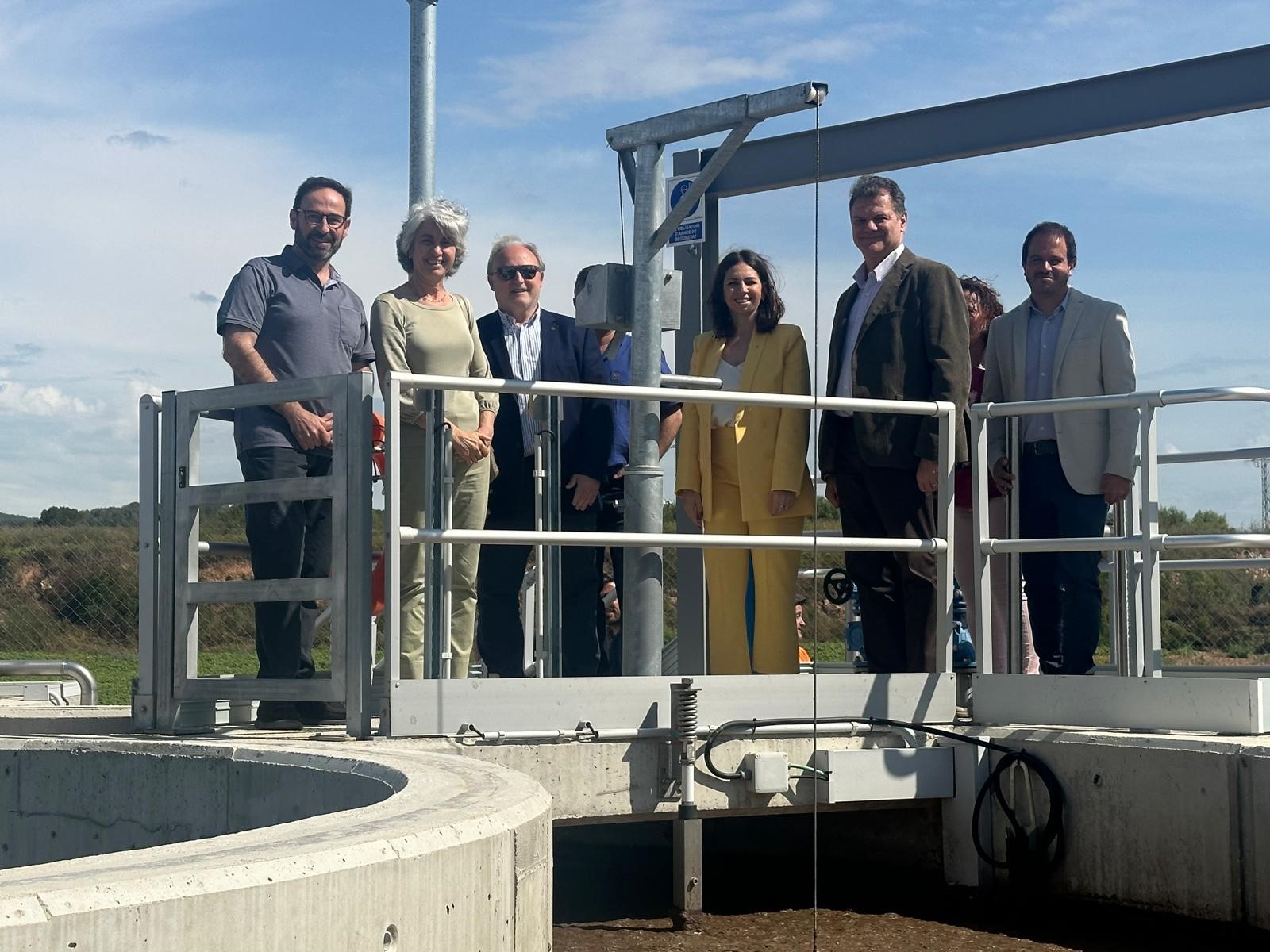 El director de l’Agència Catalana de l’Aigua (ACA), Josep Lluís Armenter, i l’alcaldessa de la Nou de Gaià, Josepa Figueras, acompanyats per la delegada del Govern a Tarragona, Lucía López, entre d’altres autoritats, han inaugurat avui la nova depuradora d’aigües residuals de la Nou de Gaià, a la comarca del Tarragonès.