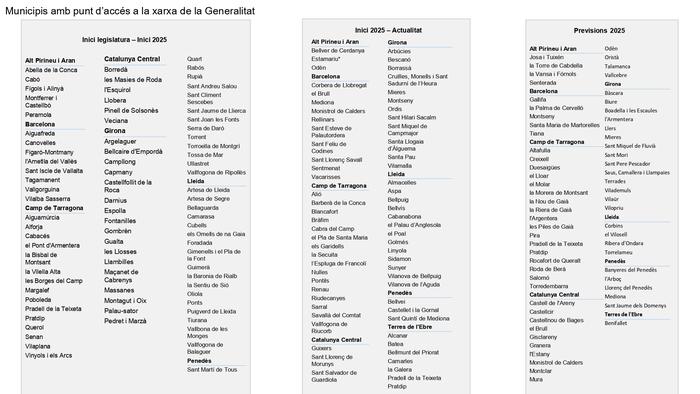 - Actualment, el 72% dels municipis catalans ja tenen punt d’accés a la xarxa de titularitat pública