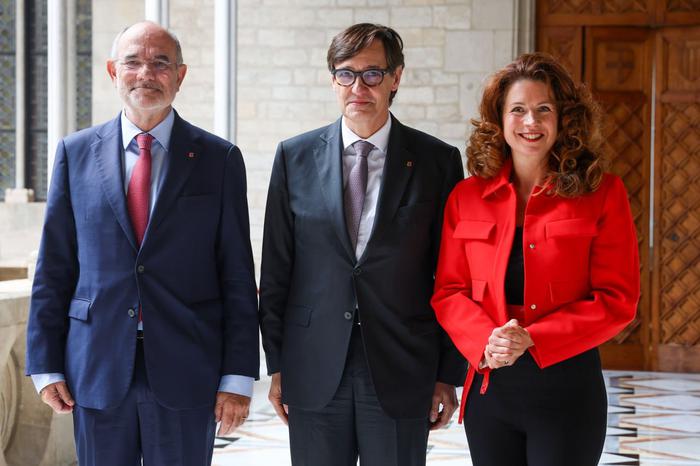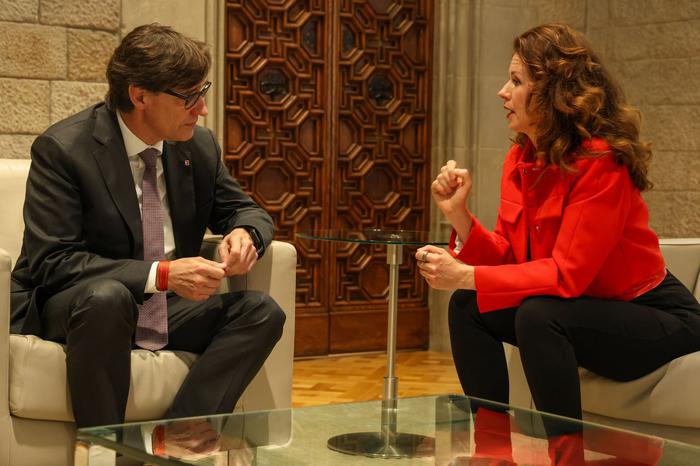 El president de la Generalitat, Salvador Illa, acompanyat pel conseller d’Unió Europea i Acció Exterior, Jaume Duch, s’ha reunit aquest divendres amb la presidenta del Comitè de les Regions, Kata Tüttó.