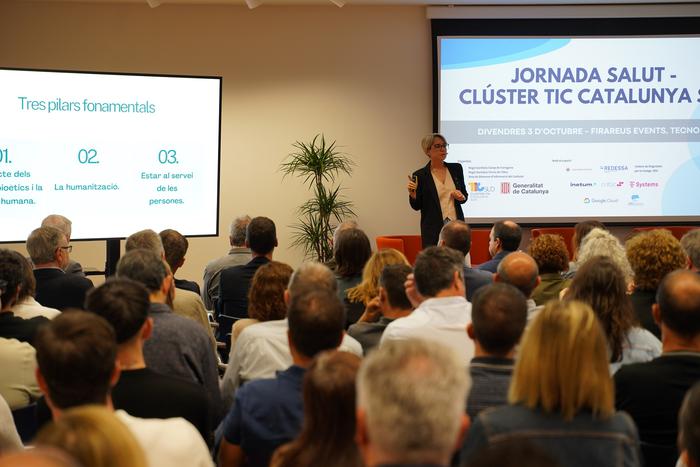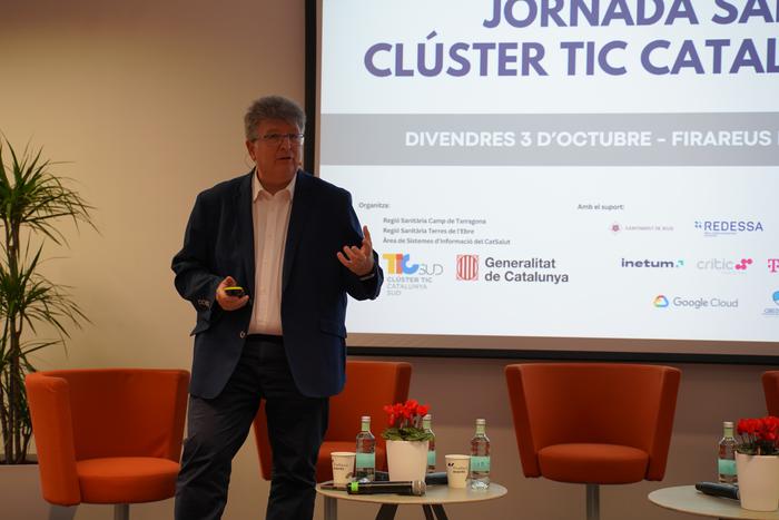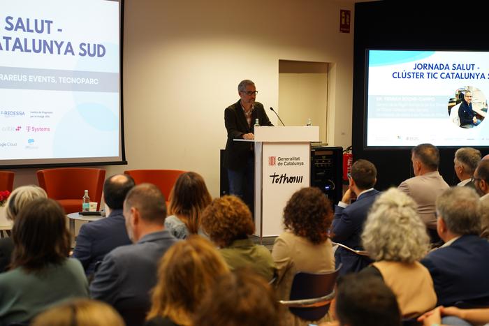 En la primera intervenció s’ha exposat el Pla estratègic de salut digital 2026-2031, que marcarà el full de ruta per a la implantació de projectes digitals en el sistema de salut de Catalunya, per part del coordinador general de les TIC de Salut i director de l'Àrea de Sistemes d'Informació del Servei Català de la Salut, Pol Pérez.