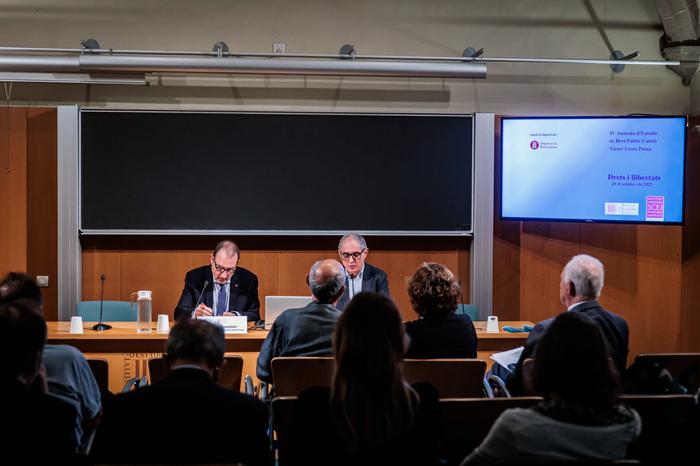 El conseller de Justícia i Qualitat Democràtica, Ramon Espadaler, ha inaugurat aquest matí les IV Jornades d’Estudis de Dret Públic Català dedicades enguany a drets i llibertats i organitzades per la Societat Catalana d’Estudis Jurídics, filial de l’Institut d’Estudis Catalans (IEC). Es tracta d’unes jornades biennals impulsades en homenatge al jurista i historiador Víctor Ferro i Pomà, autor de ‘El dret públic català’.