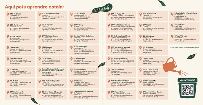 El material incorpora un codi QR que dona accés al web de l’acció, on la informació es pot consultar en les principals llengües de les persones nouvingudes. El web inclou un cercador de cursos inicials i bàsics de català, així com de grups de conversa arreu del territori, amb una oferta global de més de 400 punts formatius.
