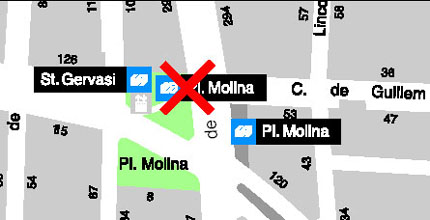 · Els usuaris que es dirigeixen cap a Plaça Catalunya des de Plaça Molina podran utilitzar l’actual estació d’FGC de Sant Gervasi.