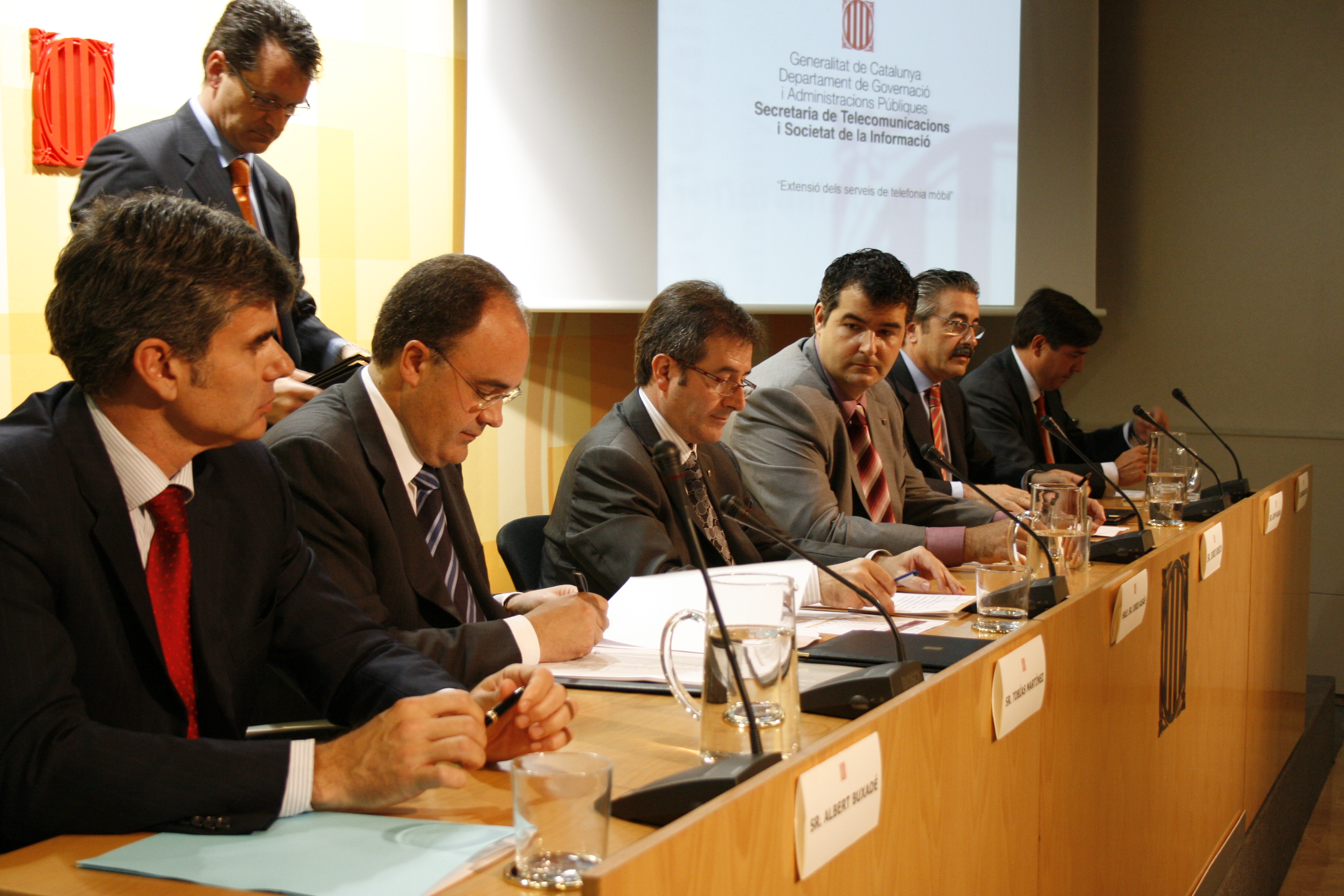En l’acte de signatura del conveni, que s’ha fet aquest dimecres a la seu del Departament de Governació i Administracions Públiques, hi han participat el director general d’Abertis Telecom Telecom, Tobías Martínez; el director general de Telefónica a Catalunya, Kim Faura; el director territorial de Vodafone a Catalunya, Albert Buxadé; i el director general de Tecnologia i Xarxes d’Orange, Eduardo Duato.