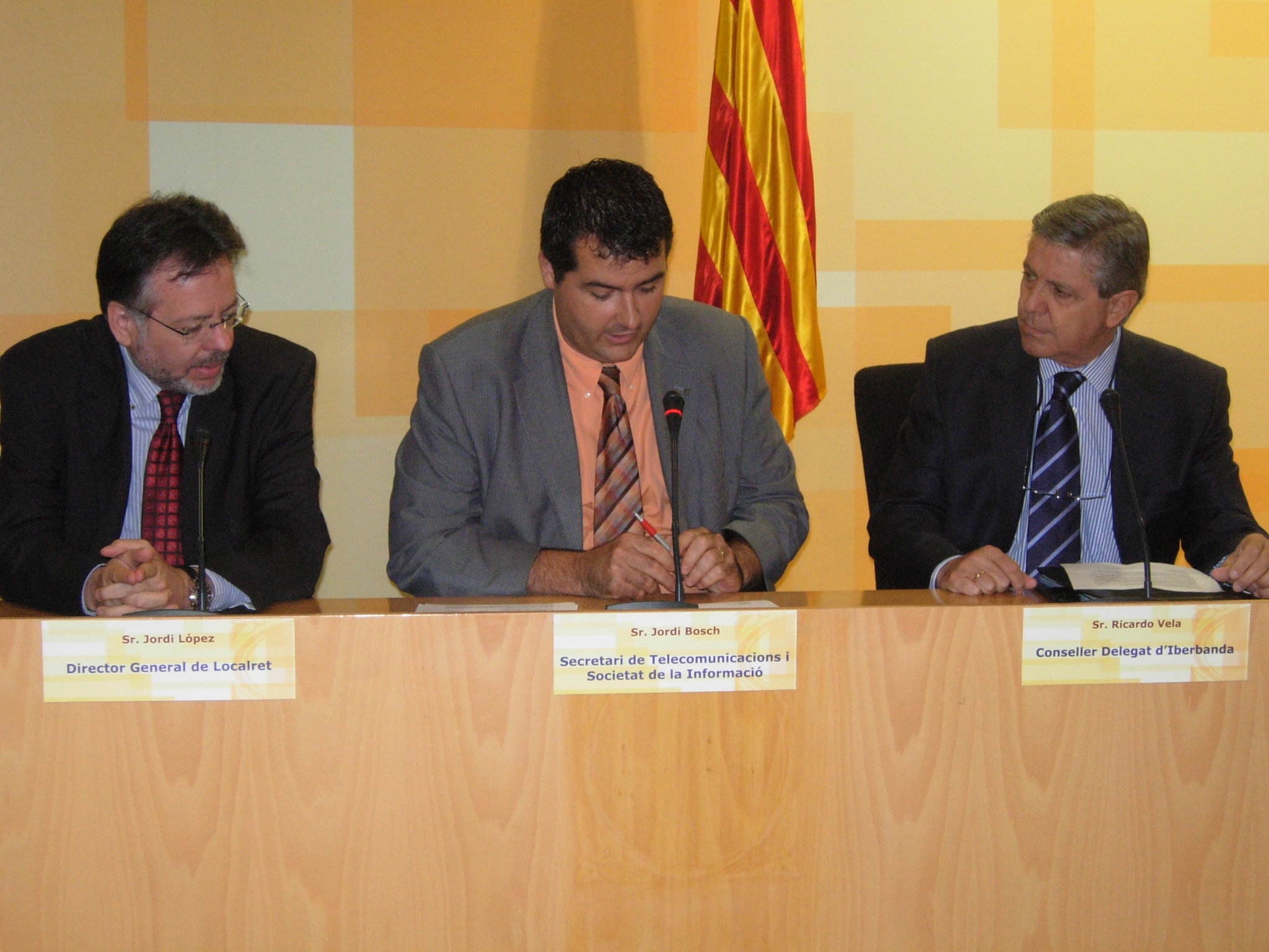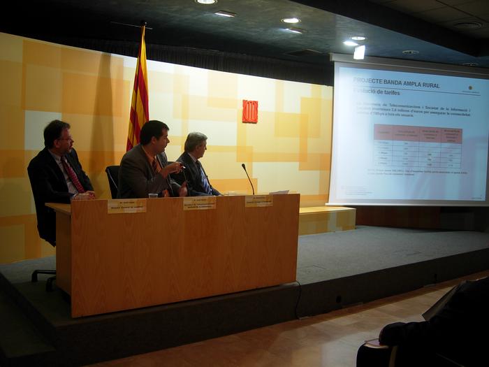 En el marc del pla Catalunya Connecta, el secretari de Telecomunicacions i Societat de la Informació, Jordi Bosch, ha presentat aquest dimarts les millores de capacitat i preu del projecte Banda Ampla Rural, que a partir del setembre garantirà la connexió mínima d'1 Mbps per 39€ al mes, gairebé la meitat del preu que els usuaris pagaven fins ara per aquesta capacitat. En la presentació també hi han participat Jordi López, director general de Localret, i Ricardo Vela, conseller delegat d'Iberbanda, l'empresa adjudicatària del desplegament d'aquest servei, que dona accés a Internet a través de tecnologia WIMAX.