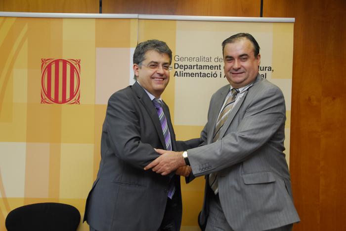 El conseller d’Agricultura, Alimentació i Acció Rural, Joaquim Llena, i el president de la Federació Intercomarcal d’Hostaleria i Restauració (FIHR) de la demarcació de Barcelona, Enric Gené, han signat avui, a Barcelona, un conveni marc de col·laboració per a la realització d’actuacions encaminades a la promoció dels productes agroalimentaris amb distintius d’origen i de qualitat. L’acte també ha comptat amb la presència del director general d’Alimentació, Qualitat i Indústries Agroalimentàries, Joan Gené, i el director general de l’INCAVI, Joan Aguado.