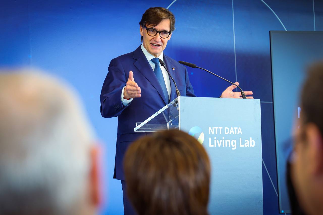 El president de la Generalitat, Salvador Illa, ha visitat aquest matí les noves instal·lacions del Living Lab de NTT Data a Barcelona amb motiu de la inauguració institucional d’aquest nou espai de treball dedicat a la investigació en l’àmbit de la intel·ligència artificial, identitat digital i realitat virtual que ha qualificat com “un espai pensat per als treballadors, incubat a la ciutat i un referent per a Barcelona”. Durant la visita, l’han acompanyat el conseller d’Empresa i Treball, Miquel Sàmper, i el secretari general del mateix departament, Pol Gilbert. També hi han assistit el director general d’NTT DATA Ibèria, Víctor López-Barrantes i la cònsol general del Japó a Barcelona, Akiko Shikata.