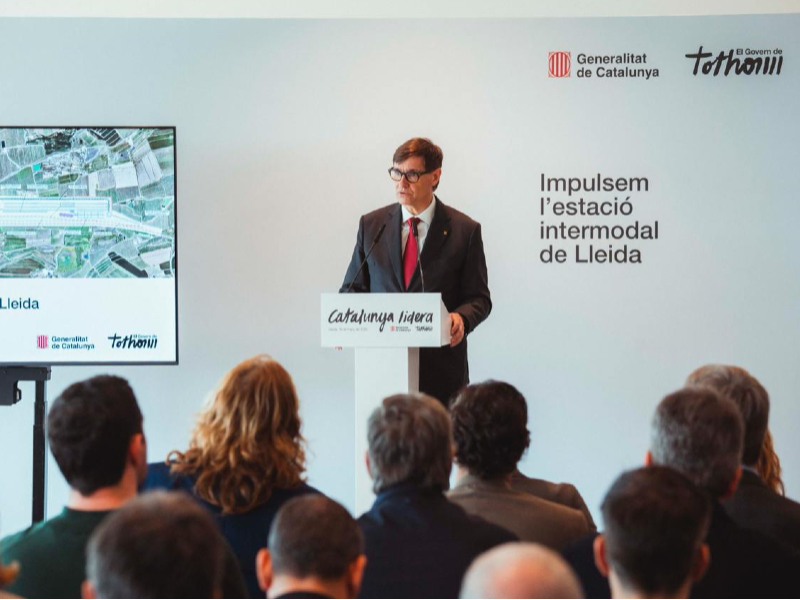 El president de la Generalitat, Salvador Illa, ha encapçalat l’acte de presentació de l’inici dels tràmits per a la construcció de la terminal ferroviària de Lleida i ha posat en relleu que és “un pas endavant important per impulsar aquesta intermodal i una operació de futur rellevant”.