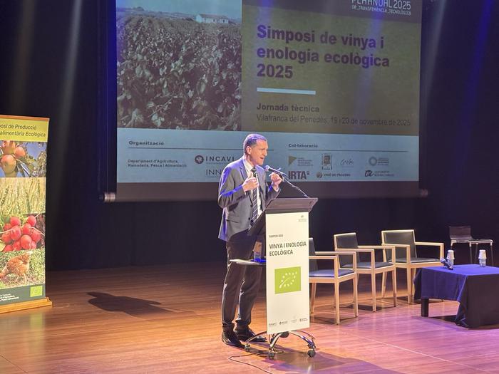 El conseller Ordeig ha exposat aquestes dades durant la seva intervenció al Simposi de Vinya i Enologia Ecològica, celebrat a l’Auditori Municipal Maria Rosa Juncosa de Vilafranca del Penedès.