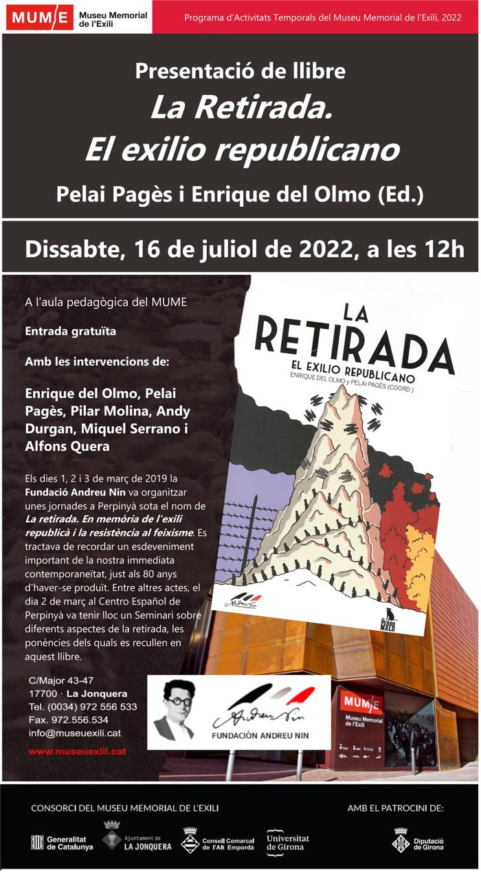 Els dies 1, 2 i 3 de març de 2019 la Fundació Andreu Nin va organitzar unes jornades a Perpinyà amb el nom “La retirada. En memòria de l'exili republicà i la resistència al feixisme”. Es tractava de recordar un esdeveniment important de la nostra immediata contemporaneïtat, just als 80 anys d'haver-se produït. Entre altres actes, el dia 2 de març, al Centro Español de Perpinyà, va tenir lloc un seminari sobre diferents aspectes de la retirada, les ponències del qual es recullen en aquest llibre.