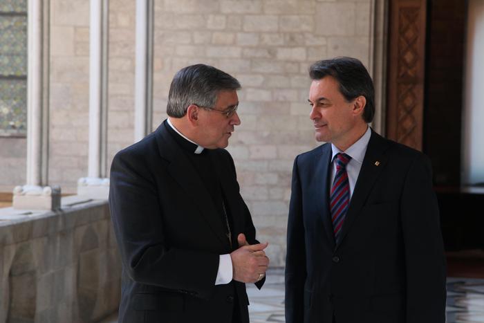 El president de la Generalitat, Artur Mas, ha rebut aquest migdia al pare abat de Montserrat, Josep M. Soler, en la que ha estat la seva primera visita oficial al Palau de la Generalitat des que Artur Mas és cap de l'Executiu.