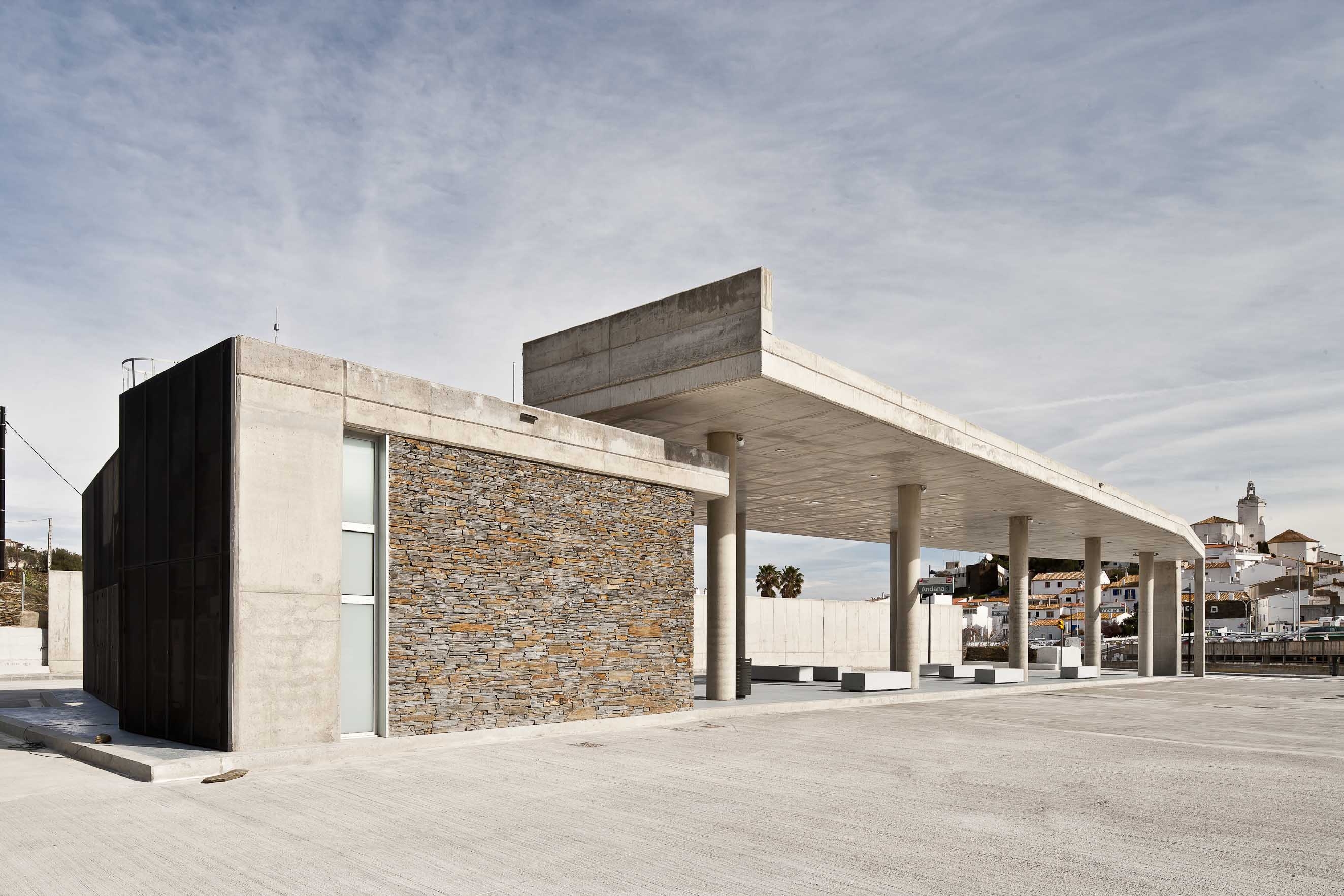 En aquest sentit, s’estructura a partir de l’espai de 485 m2 cobert amb una marquesina que acull les 4 andanes per a la parada dels autobusos i una zona destinada a l’estacionament d’autobusos. A un costat se situa un nou edifici de 75 m2 de superfície, que alberga la sala d’espera, les àrees per a la venda de bitllets, serveis i altres dependències. L’accés a l’edifici, que s’ha revestit amb pedra, es fa mitjançant una porta automàtica integrada a una estructura de vidre.