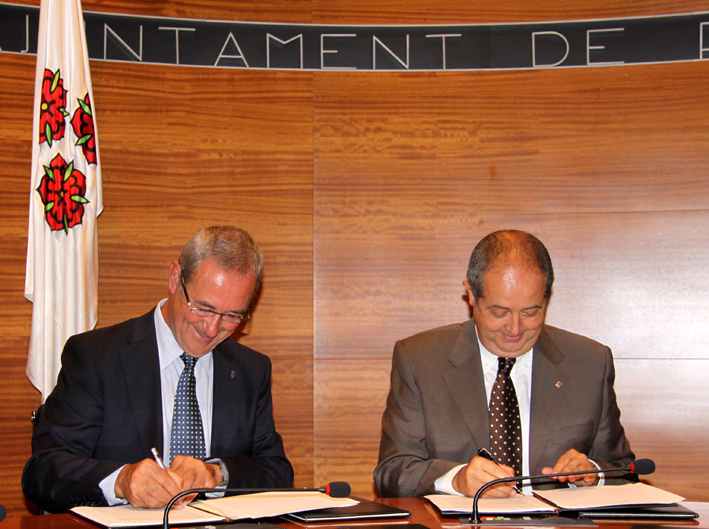 El conseller d’Interior, Felip Puig, i l’alcalde de Roses, Carles Páramo, han signat aquest matí un conveni per a l’adhesió d’aquest municipi a la xarxa RESCAT de Radiocomunicacions d’Emergències i Seguretat de Catalunya.